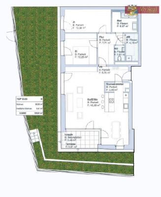 Diese Wohnung wurde ausschließlich mit den besten Ausstattungsmerkmalen versehen. Beginnend mit den Böden, welche in den Wohnräumen mit hochwertigen Parkettböden belegt wurden und in den Nassräumen mit Villeroy&Boch Fliesen die exklusivität unterstreichen.