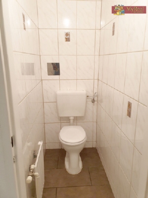 Waschmaschinen-Anschluss, WC getrennt, ausgestattet mit Laminat- und Fliesenboden, beheizt wird mit
