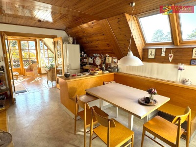 2004 umfassend saniert (Technik, Elektrik, Wasser, Heizung, Oberflächen)Bodenbeläge aus Massivparkett und edlen Fliesen Holzstiege mit dekorativem Charakter, Sauna und Wellnessbereich im Erdgeschoss, Wintergarten mit Panoramaverglasung, große Garage und 3 Carports mit Einfahrt von der Straße, ruhige, sonnige Lage am Ortsrand, großzügiger Garten mit viel Gestaltungspotenzial