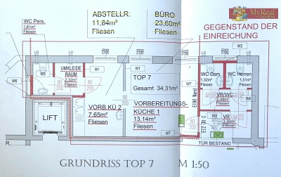 - Nutzfläche: 34,31 m² (Büro) + ca. 7 m² Lagerraum
