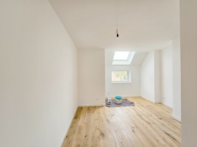 Der Boden wurde mit Fertigklebeparkett Landhausdiele Eiche belegt und mit Sockelleisten versehen.